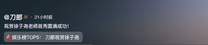 在她表演结束之后,刀郎在社交媒体上发文为徐子尧庆祝。