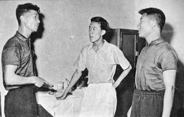 容国团(中)、傅其芳(右)融智和