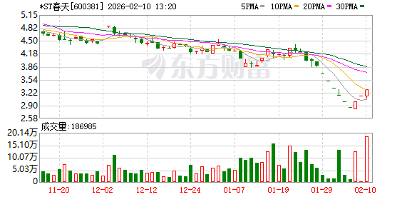 *ST春天(维权)盘中涨停,已连收3个涨停板,截至11:14,该股报3.30元,换手率2.81%,成交量1649.19万股,成交金额5261.20万元,连续涨停期间,该股累计上涨15.79%,累计换手率为5.02%。最新A股总市值达19.37亿元。